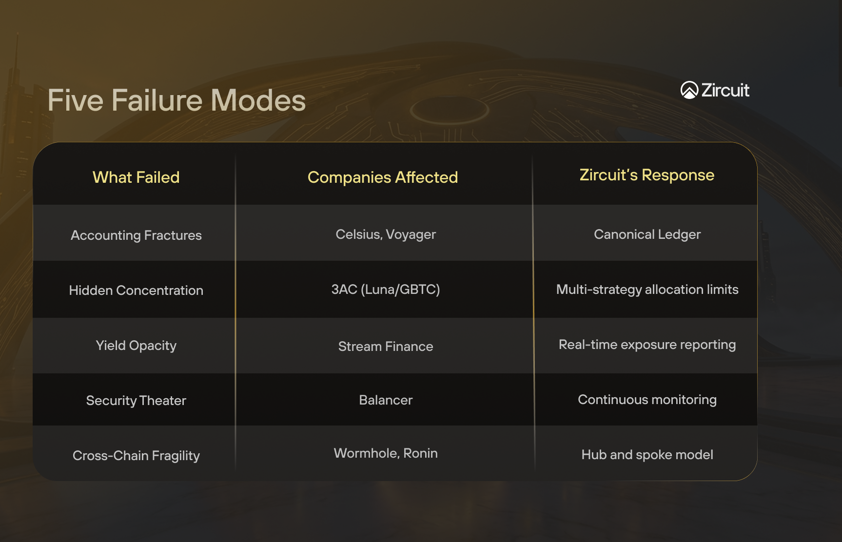 Zircuit Finance Vaults represents one attempt to answer that question. Founded by the security team behind Quantstamp, the platform addresses each documented failure mode with specific architectural responses: canonical accounting to prevent ledger fractures, institutional-grade vault architecture that intercepts risk before it reaches depositors, and institutional-grade strategy partners operating under regulatory oversight. What follows is an examination of how those responses work, and whether they deliver the survivability that institutional capital demands.