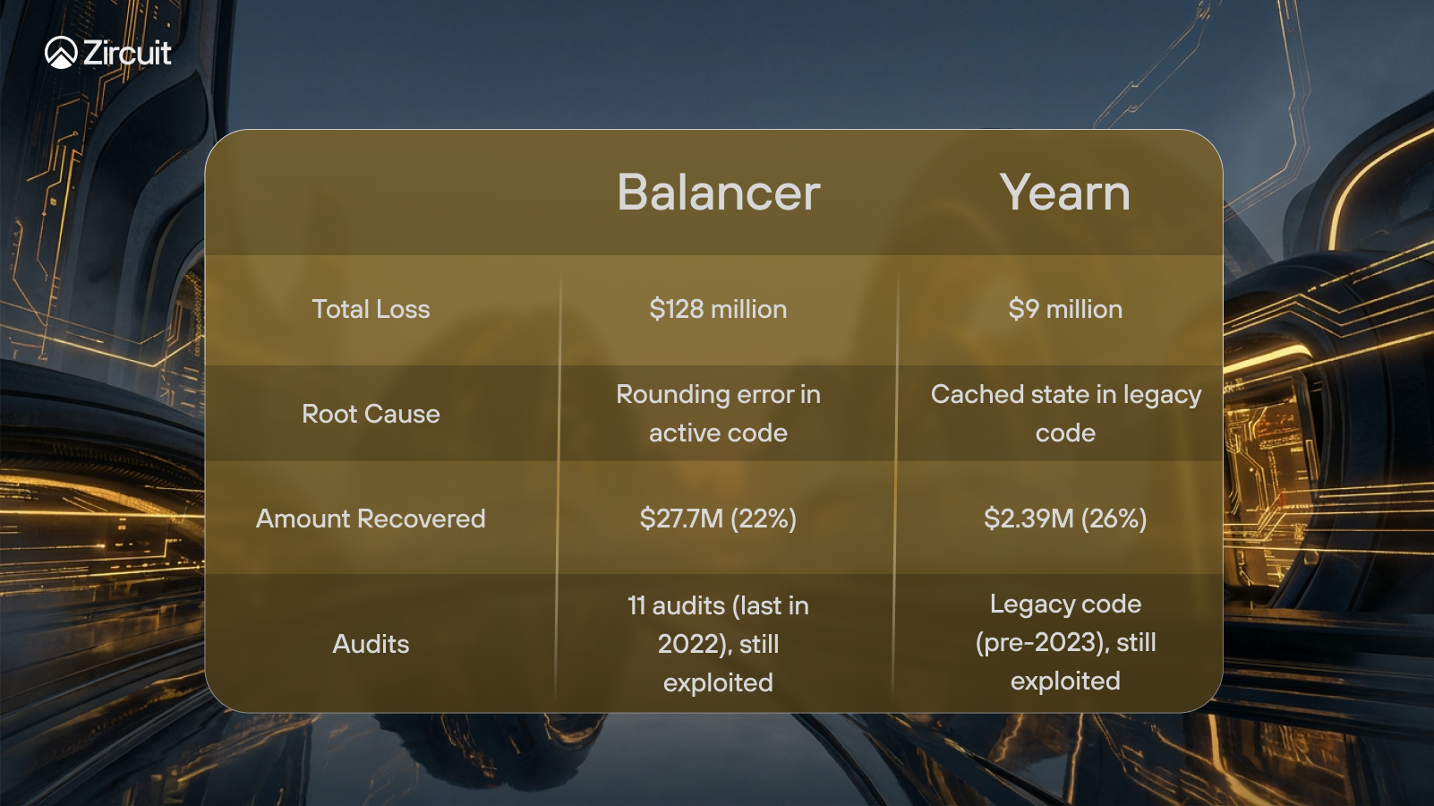 Yearn V2 and V3 vaults remained unaffected. The vulnerable contract was legacy infrastructure that had been operating since earlier iterations of the protocol. Unlike Balancer, where the flaw existed in actively maintained code, Yearn suffered from technical debt that accumulated over years of protocol evolution.